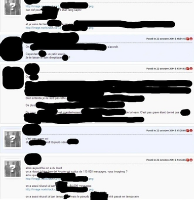 Néanmoins, un peu plus de deux semaines plus tard, ceux-ci finissent par être interdits le 19 janvier 2014. L'annonce suscite suffisamment d'engouement pour qu'un topic dédié fasse son apparition sur le forum Communauté. En réaction à cela, Zruster Bt forum profil.gif, un des principaux joueurs, met en place un message privé de groupe afin d'avertir les nombreux habitués de l'interdiction pure et dure de leur regretté jeu à posts, puis les incite à argumenter en faveur d'un éventuel retour, cette fois sous la tutelle d'un encadrement plus stricte, en vain.