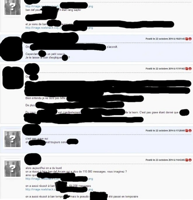- Il aurait reçu un nombre incalculable de messages privés insultants à la suite de la publication d'un certain topic[71].