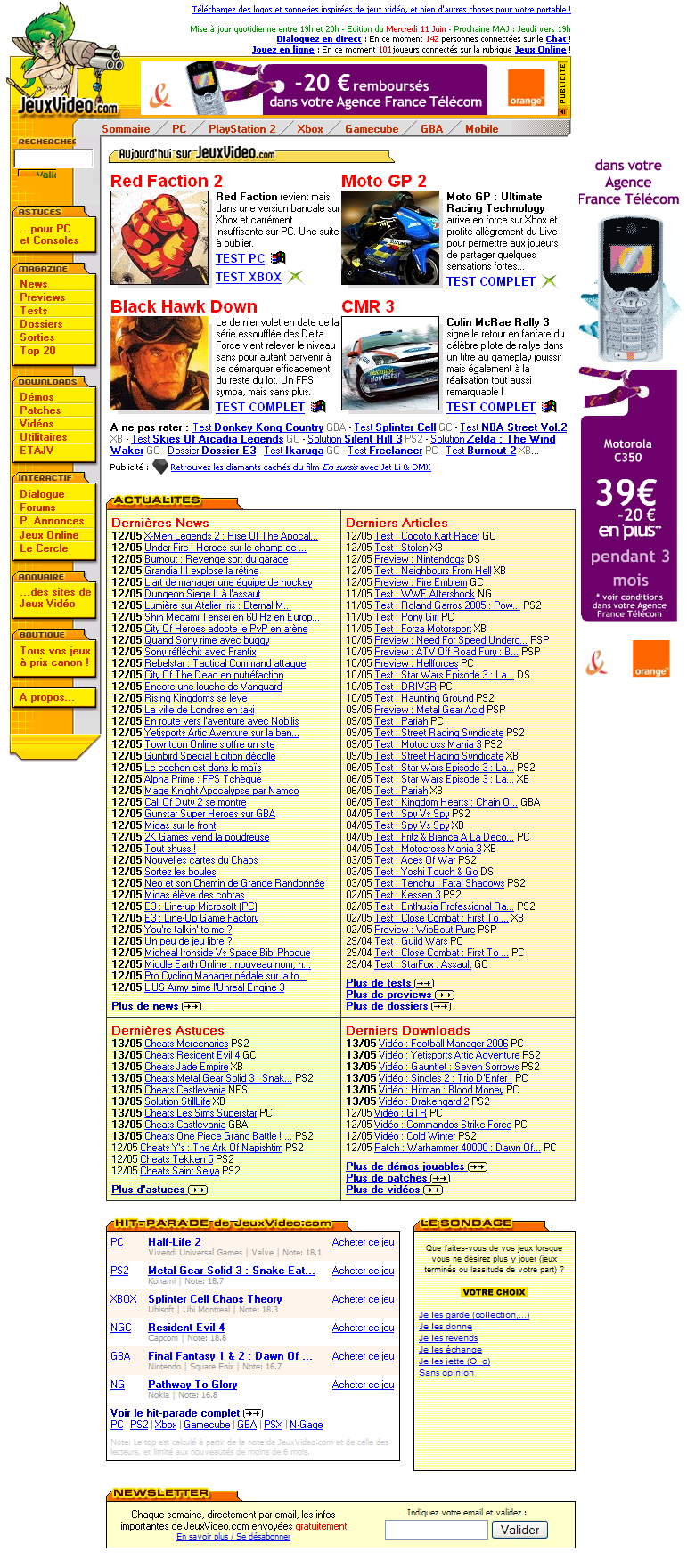 Révision datée du 5 décembre 2013 à 04:32 par Lightman (discussion | contributions) (Jeuxvideo.com en septembre 2002. Source : http://www.jeuxvideo.com/dossiers/00011660/les-debuts-de-jeuxvideo-com-2002-a-2005-plus-de-contenu-en-page-d-accueil-007.htm Fichier : http://image.jeuxvideo.com/imd/j/jv2002_2005.jpg)